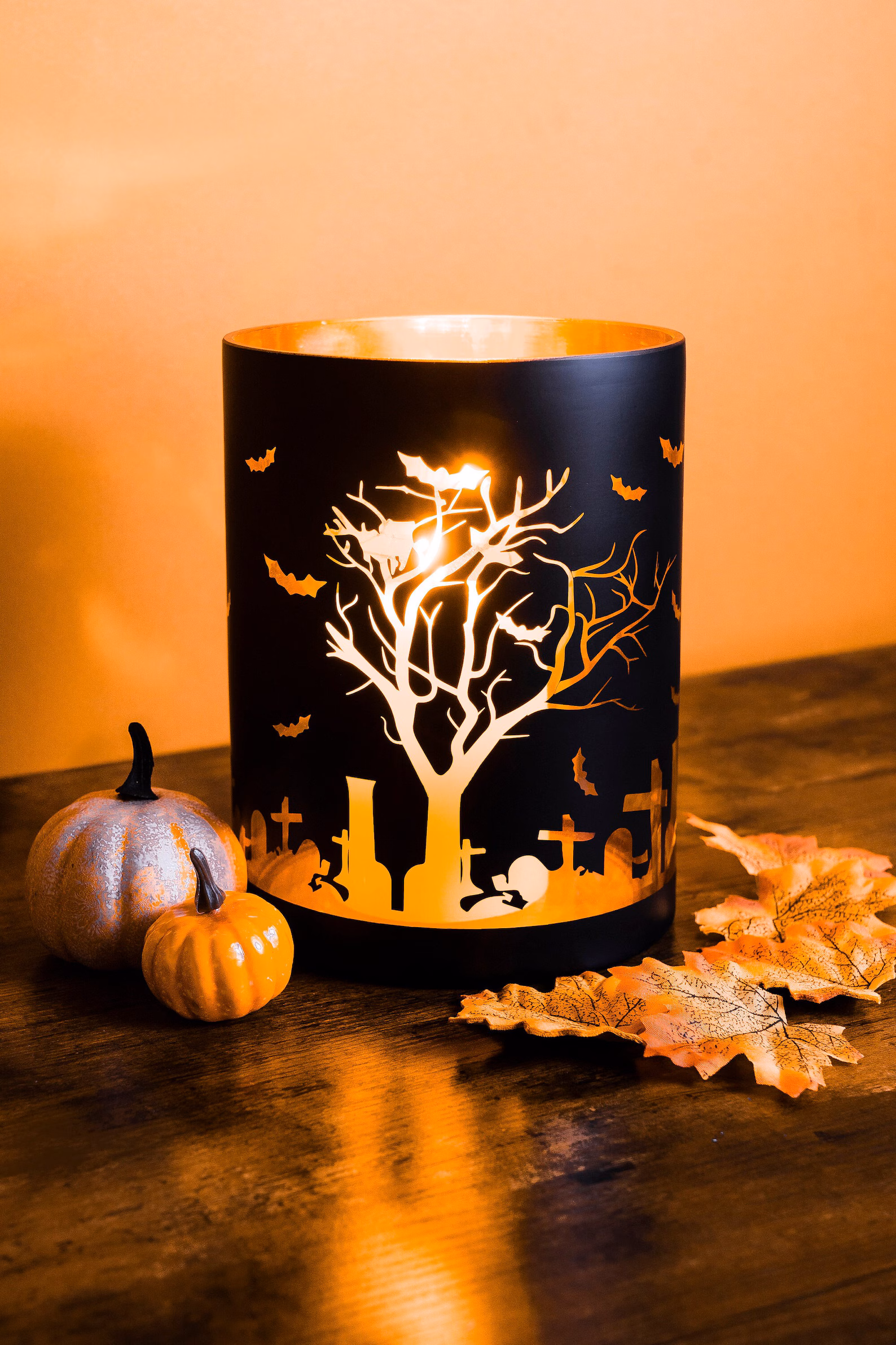 These cheerful carved pumpkin faces floating above your table create the most magical, party-ready atmosphere with their warm orange glow. The lights feel like happy little spirits blessing your meal from above! They add this whimsical, trick-or-treat feeling that makes everyone feel like kids again. The gentle light creates such a cozy, welcoming ambiance while keeping that essential Halloween spirit alive throughout the meal.