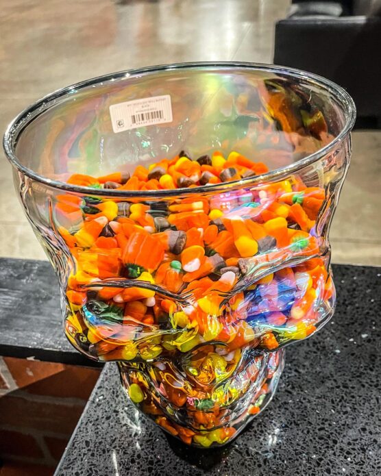 9. Candy Corn Filled Glass Bowls