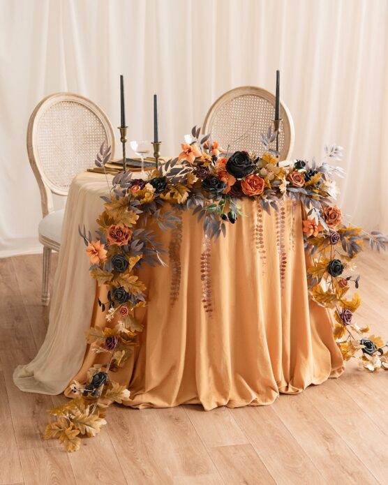 These gothic blooms create such an elegant, romantic darkness that’s both beautiful and mysterious. Black roses have this dramatic, almost Victorian mourning aesthetic that’s hauntingly gorgeous. Arranged in dark vases, they look like they belong in a haunted mansion’s dining room. The deep, velvety petals catch the light in such an enchanting way, creating shadows and highlights that make the whole table feel more intimate and mysterious.
