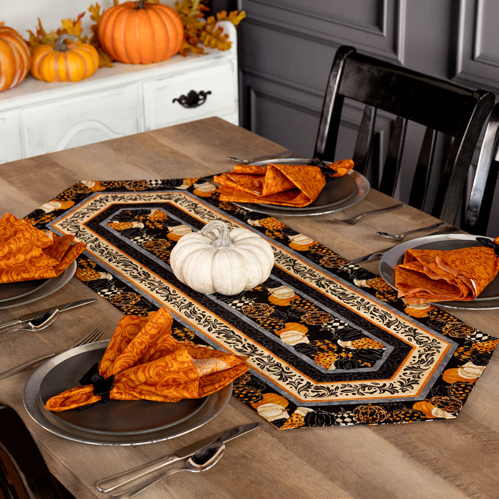 Nothing says Halloween quite like those classic orange and black stripes creating a bold, festive foundation for your entire table. The stripes have this vintage carnival or circus feel that’s both fun and slightly mysterious. It’s like your dining table is wearing the perfect Halloween costume! The bold pattern creates such energy and movement, making the whole table feel alive and ready for a celebration.