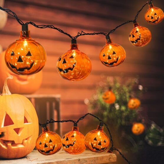 23. Glowing Jack-o’-Lantern String Lights Overhead