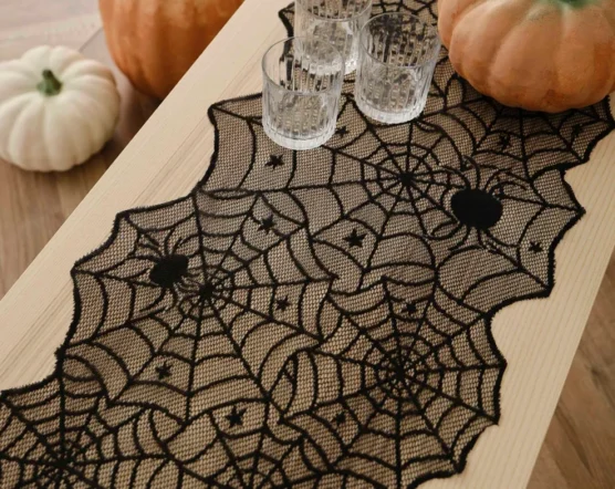 3. Spider Web Table Runner with Plastic Spiders