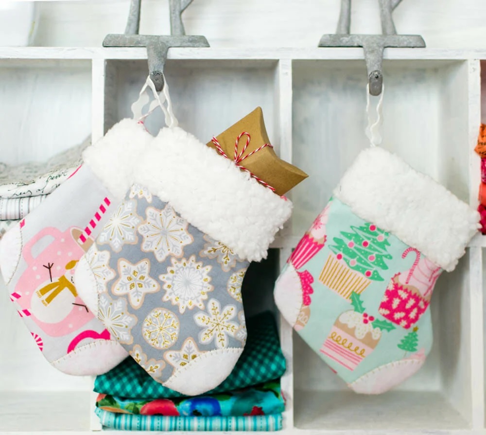 Each stocking has its own personality based on the fabric choices, and the slightly imperfect hand-stitched edges add to their homemade charm. They feel like something grandma might have made with love and care.