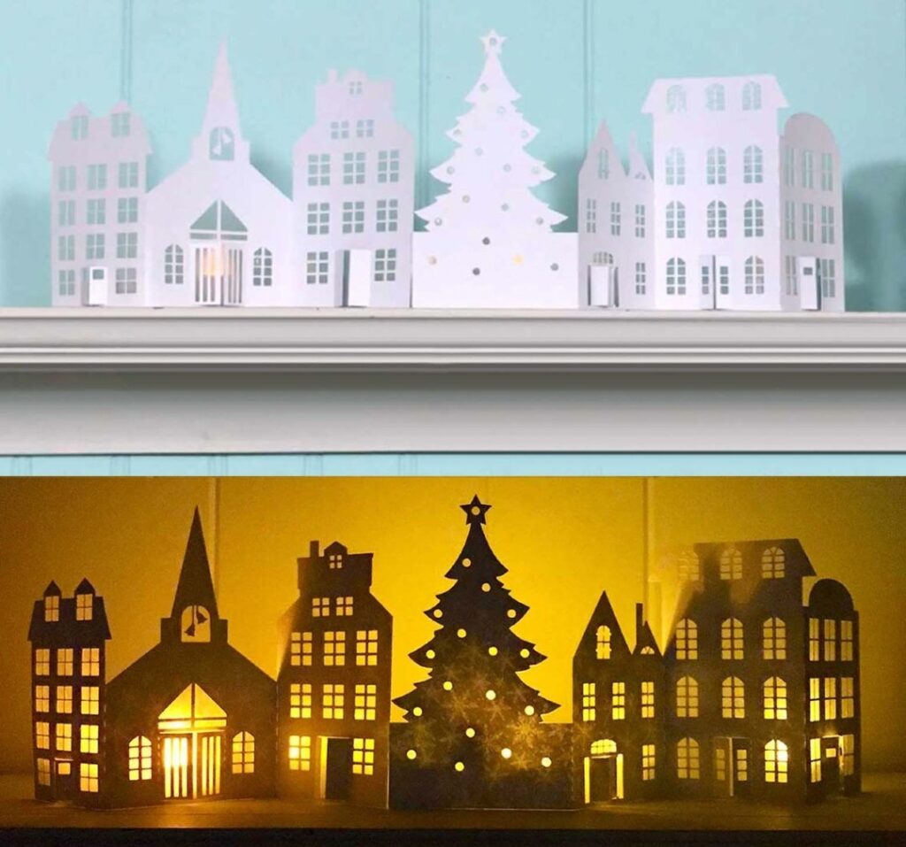 20. Hand-Cut Paper Christmas Village Silhouettes