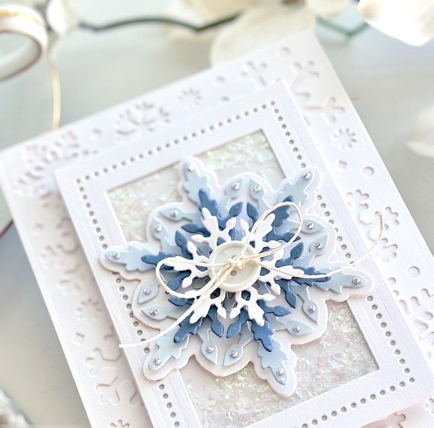 When you layer them in whites and soft blues, they create wonderful depth and shadow effects. These cards feel fresh and winter-pure, capturing that quiet beauty of a snowy morning when everything looks magical and pristine.