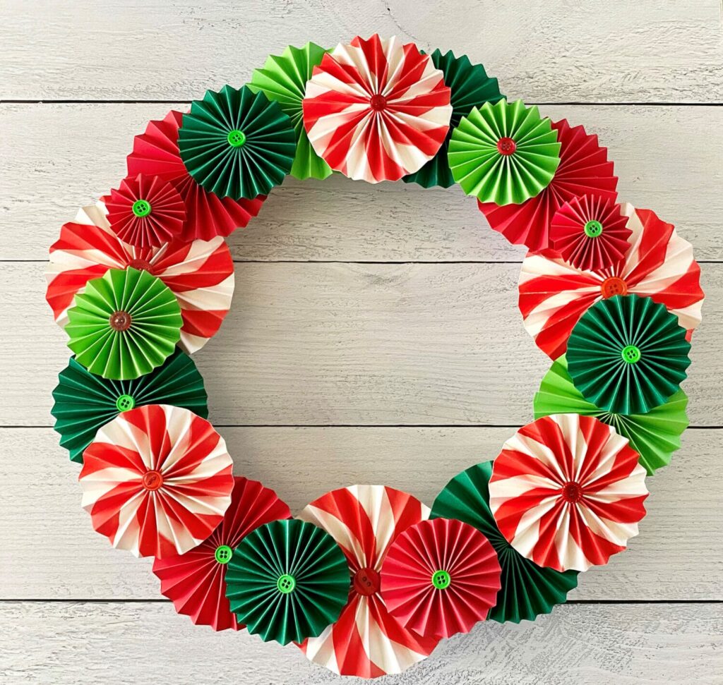 The dimensional spirals of paper rosettes create such rich texture and visual depth in these wreath designs. Each rosette casts its own small shadow, building up layers of light and dark that make the whole wreath seem to come alive.