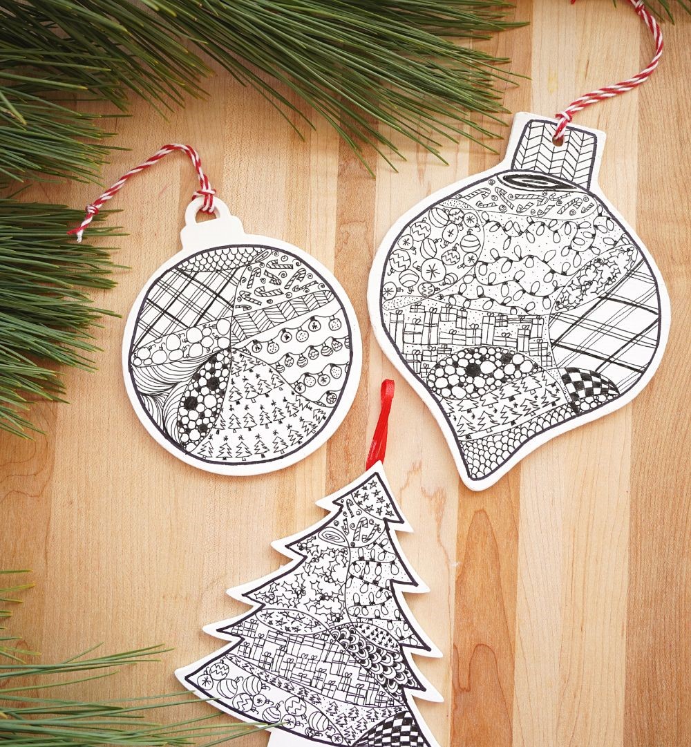 16. Hand-Drawn Zentangle Christmas Ornaments
